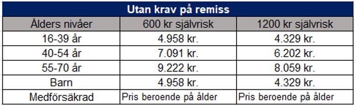 Exempel på pris baserade på ålder, självrisk- och remissval